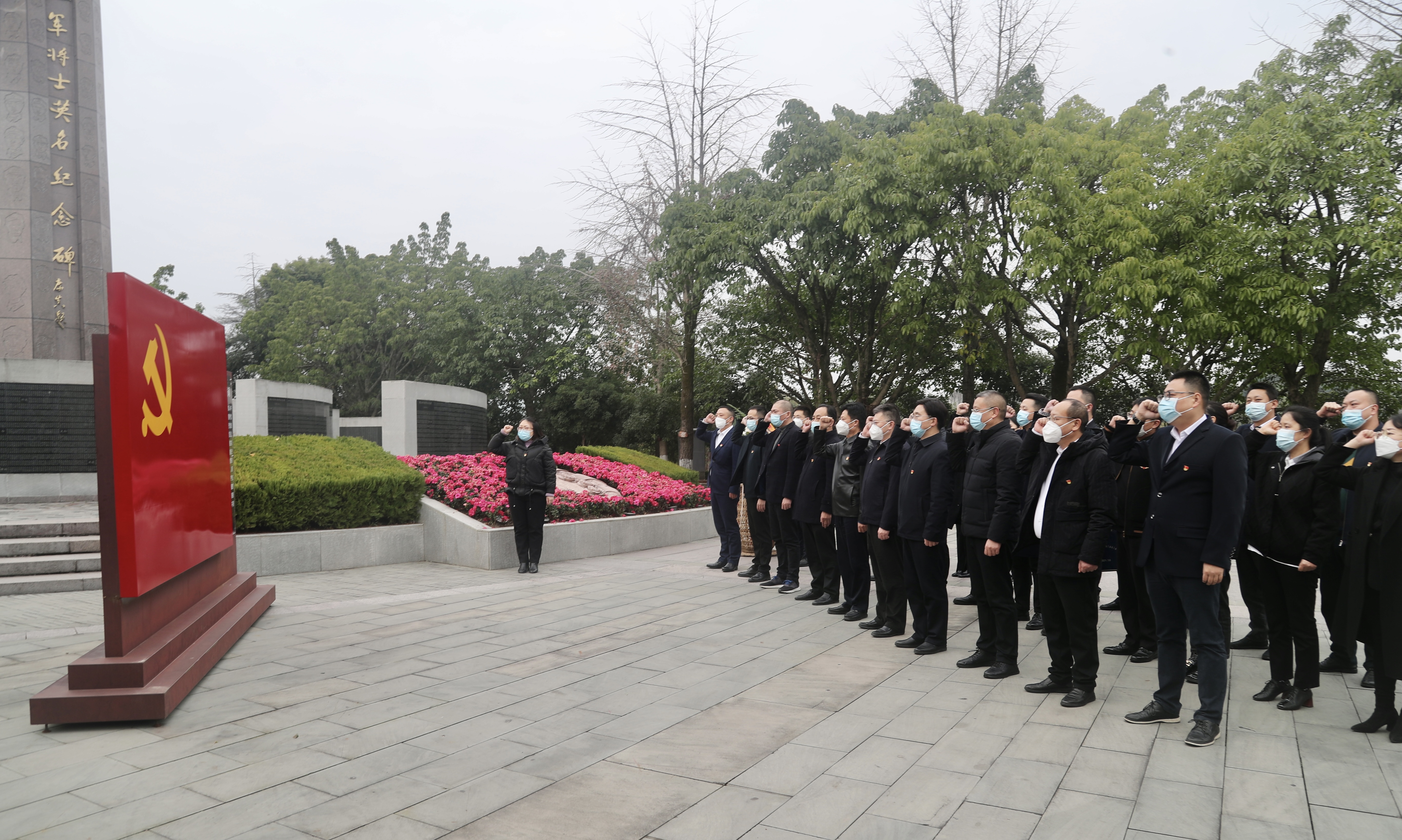 敬獻(xiàn)鮮花緬懷英烈——崇敬之心祭奠英魂。隨后,大家來到鐫刻著全國各地近10萬紅軍將士英名的川陜蘇區(qū)將帥碑林,在碑林正中央的英烈紀(jì)念廣場(chǎng),大家莊嚴(yán)肅立,深情瞻仰英雄紀(jì)念碑;在講解員帶領(lǐng)下,集團(tuán)黨委書記、董事長許大政向前敬獻(xiàn)花籃、整理緞帶,大家集體向烈士默哀并三鞠躬,深切表達(dá)對(duì)革命烈士的崇敬之情。沿著紀(jì)念碑下方的英烈紀(jì)念墻,大家慢慢前行、靜靜端詳,一個(gè)個(gè)熟悉的地名、一個(gè)個(gè)陌生的名字,深深激蕩著大家的心靈。