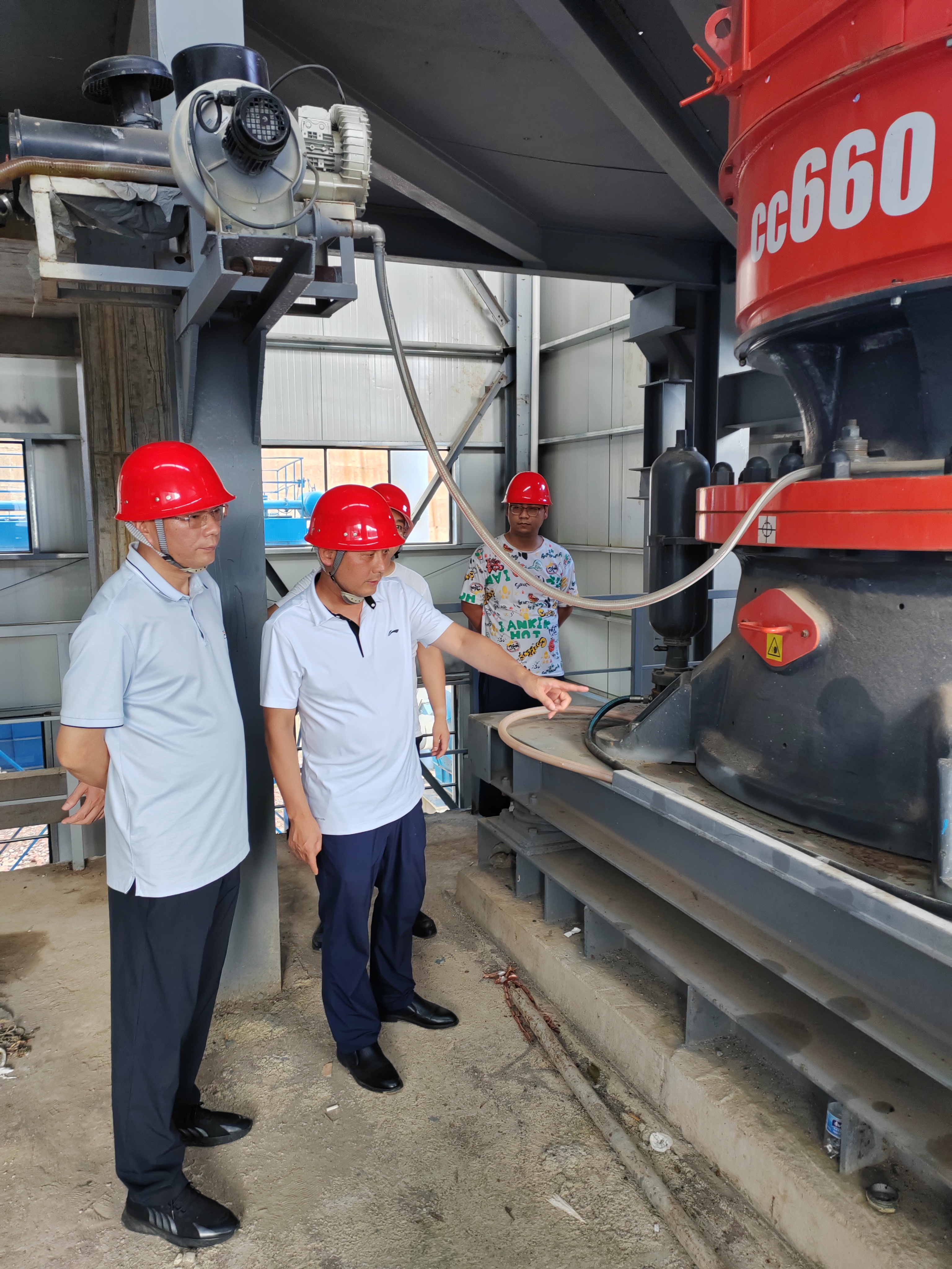 在現(xiàn)場(chǎng)踏勘時(shí),茍儒沿著各項(xiàng)生產(chǎn)工序逐一查看了重要機(jī)組設(shè)備的裝機(jī)調(diào)試情況,著重了解了項(xiàng)目整體建設(shè)情況和試運(yùn)行前各項(xiàng)工作準(zhǔn)備情況。
