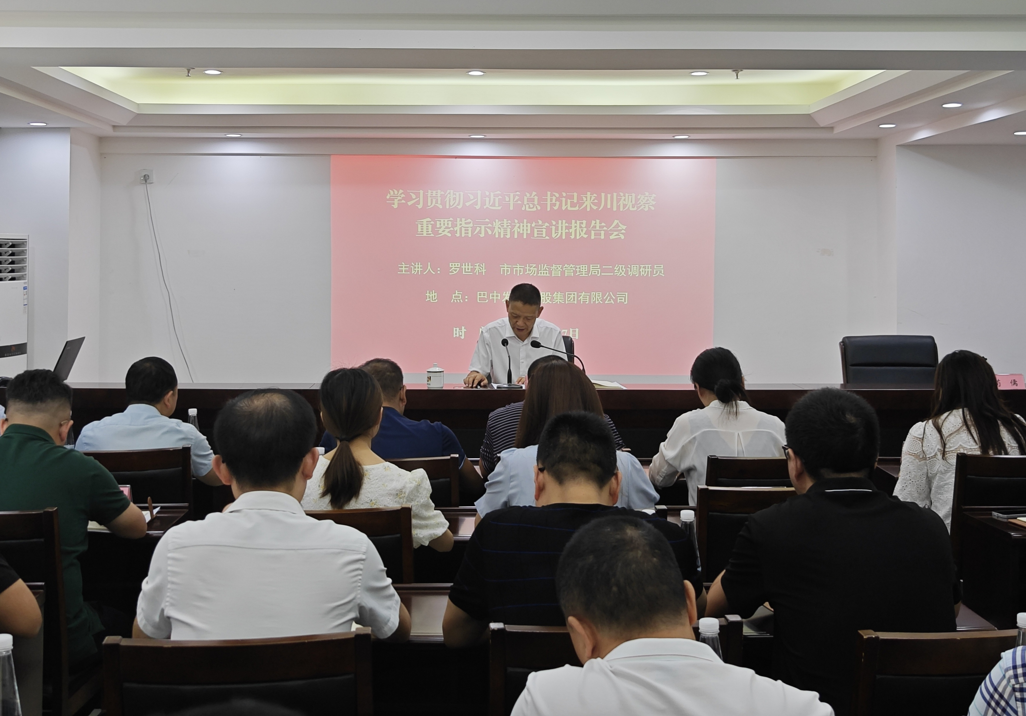 9月7日,為深入學(xué)習(xí)宣傳貫徹習(xí)近平總書記來川視察重要指示精神,市委宣講團(tuán)企業(yè)宣講分隊(duì)在巴中發(fā)展控股集團(tuán)有限公司開展專題宣講活動(dòng)。市市場監(jiān)督局二級(jí)調(diào)研員羅世科做專題宣講報(bào)告,集團(tuán)公司中層管理人員,下屬二、三級(jí)企業(yè)領(lǐng)導(dǎo)班子成員等參加會(huì)議。