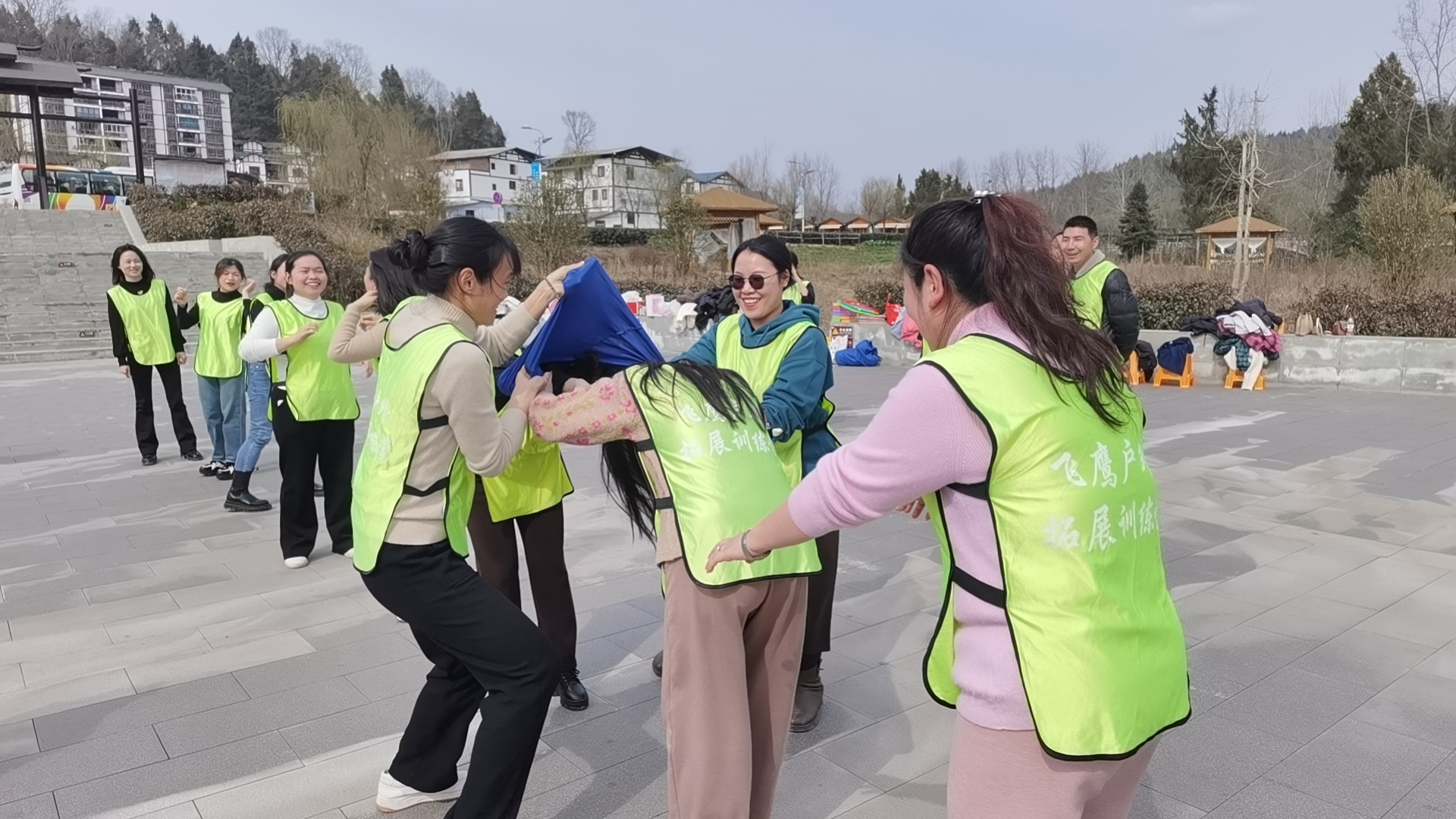 下午,女職工們在駟馬水鄉(xiāng)碼頭廣場開展了團建活動。活動開始前,教官按照報數(shù)的順序,將全體參與人員隨機分成了紅、黃、綠3個隊,隊員們通過進(jìn)行輪流交換揉肩、捶背等放松活動打破隔閡、消除尷尬,營造了歡快活潑的團隊氛圍。