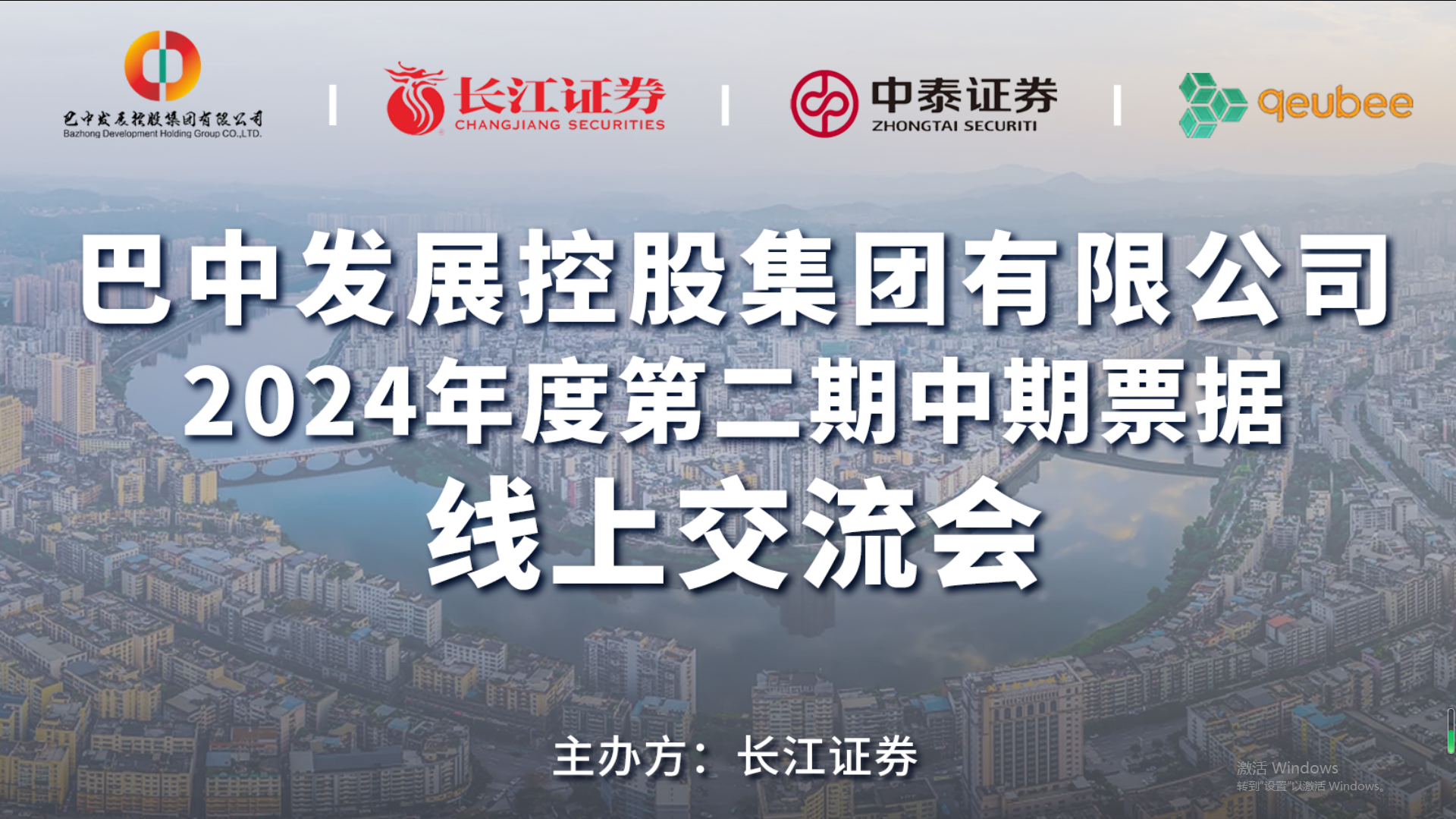 2024年4月16日,巴中發(fā)展集團(tuán)成功舉行2024年度第二期中期票據(jù)債券投資人線上交流會(huì),集團(tuán)副總經(jīng)理?xiàng)疃Y旗就集團(tuán)主營業(yè)務(wù)、發(fā)展前景和未來融資計(jì)劃等方面作詳細(xì)推介,活動(dòng)邀請東吳證券、國信證券、浙商證券等50多家金融機(jī)構(gòu)參加。本次推介的成功舉辦,增進(jìn)了投資人對巴中地區(qū)及巴中發(fā)展集團(tuán)的了解,促進(jìn)了企業(yè)與金融機(jī)構(gòu)的高效互動(dòng),增強(qiáng)了廣大投資人的信心,讓更多投資人看到巴中發(fā)展集團(tuán)的前景和投資價(jià)值,推動(dòng)集團(tuán)更好地運(yùn)用債券市場,降低融資成本,防范債務(wù)風(fēng)險(xiǎn),助力集團(tuán)高質(zhì)量發(fā)展。