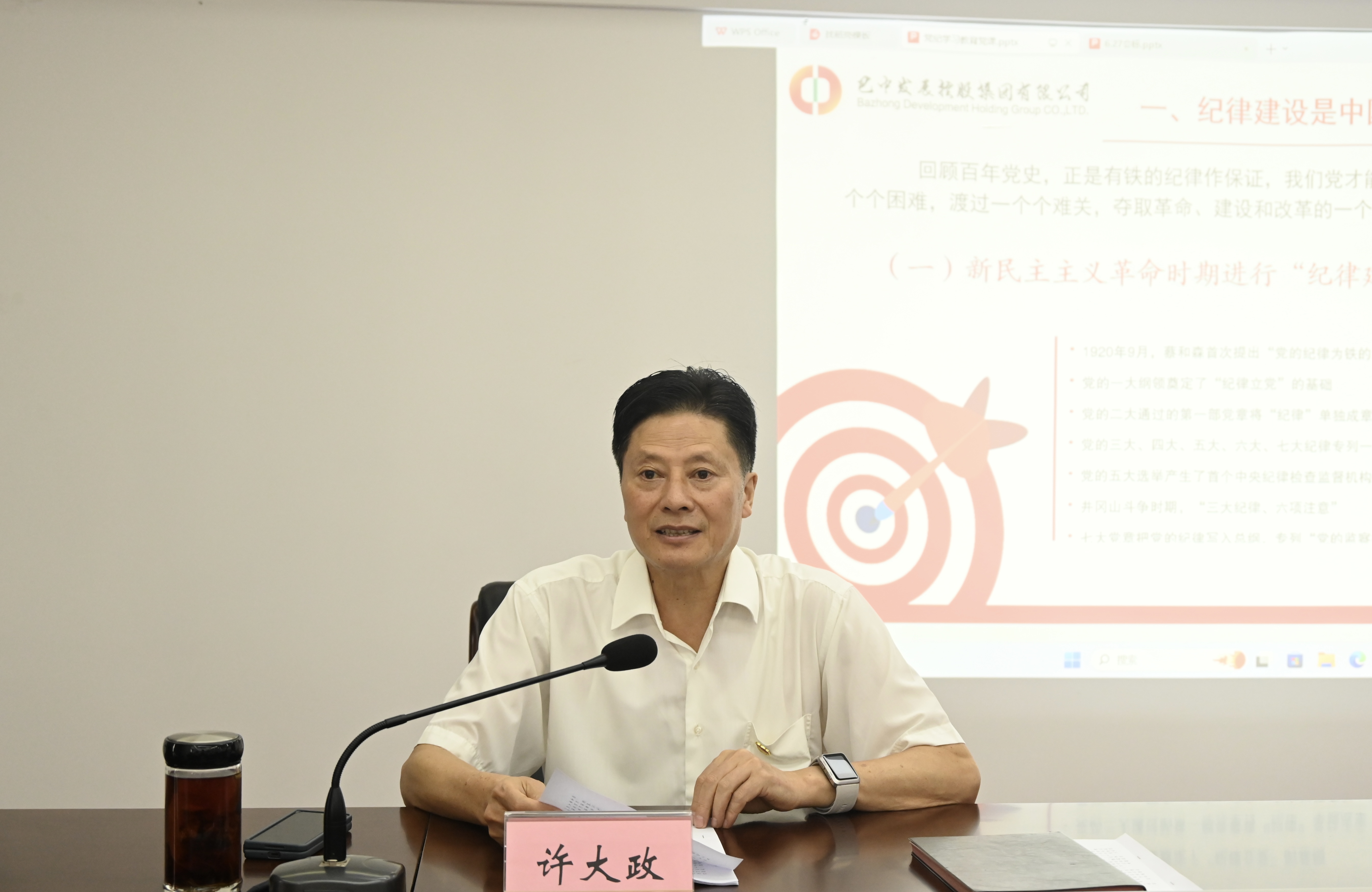 活動(dòng)當(dāng)天,巴中發(fā)展控股集團(tuán)有限公司黨委書(shū)記、董事長(zhǎng)許大政以“學(xué)紀(jì)知紀(jì)明紀(jì)守紀(jì)踐行忠誠(chéng)干凈擔(dān)當(dāng)”為主題,圍繞紀(jì)律建設(shè)是中國(guó)共產(chǎn)黨克敵制勝的重要法寶、充分認(rèn)清黨員干部違紀(jì)違法的嚴(yán)重危害、當(dāng)前黨員干部在遵規(guī)守紀(jì)方面存在的問(wèn)題、以實(shí)際行動(dòng)踐行忠誠(chéng)干凈擔(dān)當(dāng)?shù)确矫?,生?dòng)講授了一堂黨紀(jì)學(xué)習(xí)教育專(zhuān)題黨課,教育引導(dǎo)全體黨員銘記黨的奮斗歷史、傳承黨的紅色基因、弘揚(yáng)偉大建黨精神,真正將紀(jì)律銘記于心,使其內(nèi)化為工作生活中自覺(jué)遵循的準(zhǔn)則。