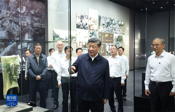 位于德陽市廣漢市西北鴨子河南岸的三星堆遺址,代表了數(shù)千年前的古蜀文明面貌和發(fā)展水平,是同時期長江流域文化內(nèi)涵最豐富、面積最大的都城遺址。26日下午,習(xí)近平來到三星堆博物館新館,參觀“世紀(jì)逐夢”、“巍然王都”、“天地人神”等展陳,了解三星堆遺址發(fā)掘歷程和古蜀文明成果。在三星堆博物館文物保護(hù)與修復(fù)館,習(xí)近平走進(jìn)文保修復(fù)工作區(qū),仔細(xì)察看文物保護(hù)修復(fù)工作流程細(xì)節(jié)和最新技術(shù),同現(xiàn)場工作人員親切交流。習(xí)近平指出,三星堆遺址考古成果在世界上是叫得響的,展現(xiàn)了四千多年前的文明成果,為中華文明多元一體、古蜀文明與中原文明相互影響等提供了更為有力的考古實(shí)證。文物保護(hù)修復(fù)是一項(xiàng)長期任務(wù),要加大國家支持力度,加強(qiáng)人才隊(duì)伍建設(shè),發(fā)揚(yáng)嚴(yán)謹(jǐn)細(xì)致的工匠精神,一件一件來,久久為功,做出更大成績。習(xí)近平代表黨中央,對三星堆博物館新館的落成使用表示熱烈祝賀,向廣大考古工作者表示衷心感謝和崇高敬意!