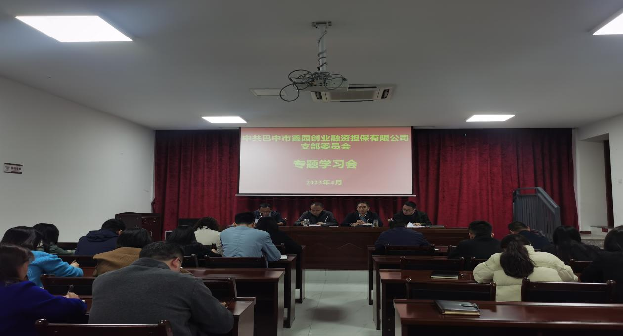 4月23日,市鑫園創(chuàng)業(yè)融資擔(dān)保有限公司黨支部召開黨員大會(huì),專題學(xué)習(xí)了《巴中市國(guó)有企業(yè)落實(shí)黨建工作八條基本任務(wù)》,黨支部書記吳德映主持會(huì)議并講話,公司黨員、入黨積極分子以及中層管理人員參加會(huì)議。
