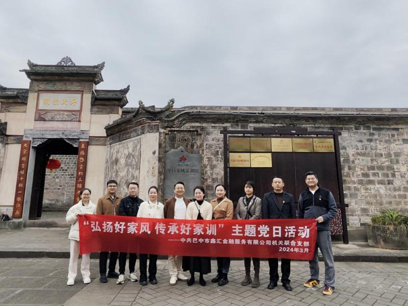 家風(fēng)正則黨風(fēng)清,家風(fēng)正則作風(fēng)優(yōu)。為進(jìn)一步弘揚(yáng)中華民族傳統(tǒng)美德,傳承良好家風(fēng)家訓(xùn),3月20日下午,中共巴中市鑫匯金融服務(wù)有限公司機(jī)關(guān)聯(lián)合支部前往平昌縣白衣古鎮(zhèn)開(kāi)展“弘揚(yáng)好家風(fēng)·傳承好家訓(xùn)”主題黨日活動(dòng),機(jī)關(guān)聯(lián)合支部全體黨員參加。