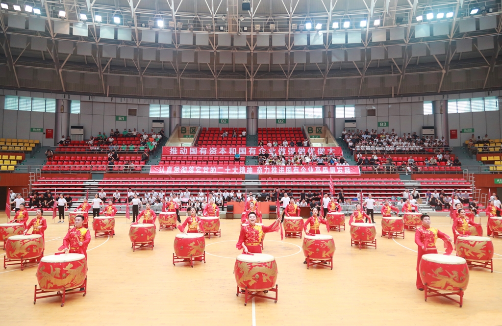 巴中發(fā)展集團(tuán)員工在全市國資系統(tǒng)職工運(yùn)動會開幕式上表演自創(chuàng)文藝節(jié)目《領(lǐng)航筑夢》